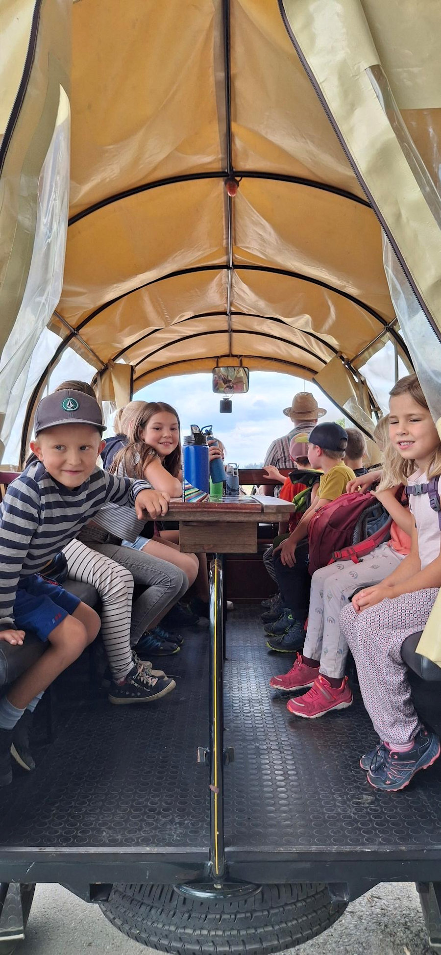Familie Hefele spannte für uns ihre Pferde ein und in einer fröhlichen Kutschpartie ging`s quer durch die Denklinger Fluren. Beim