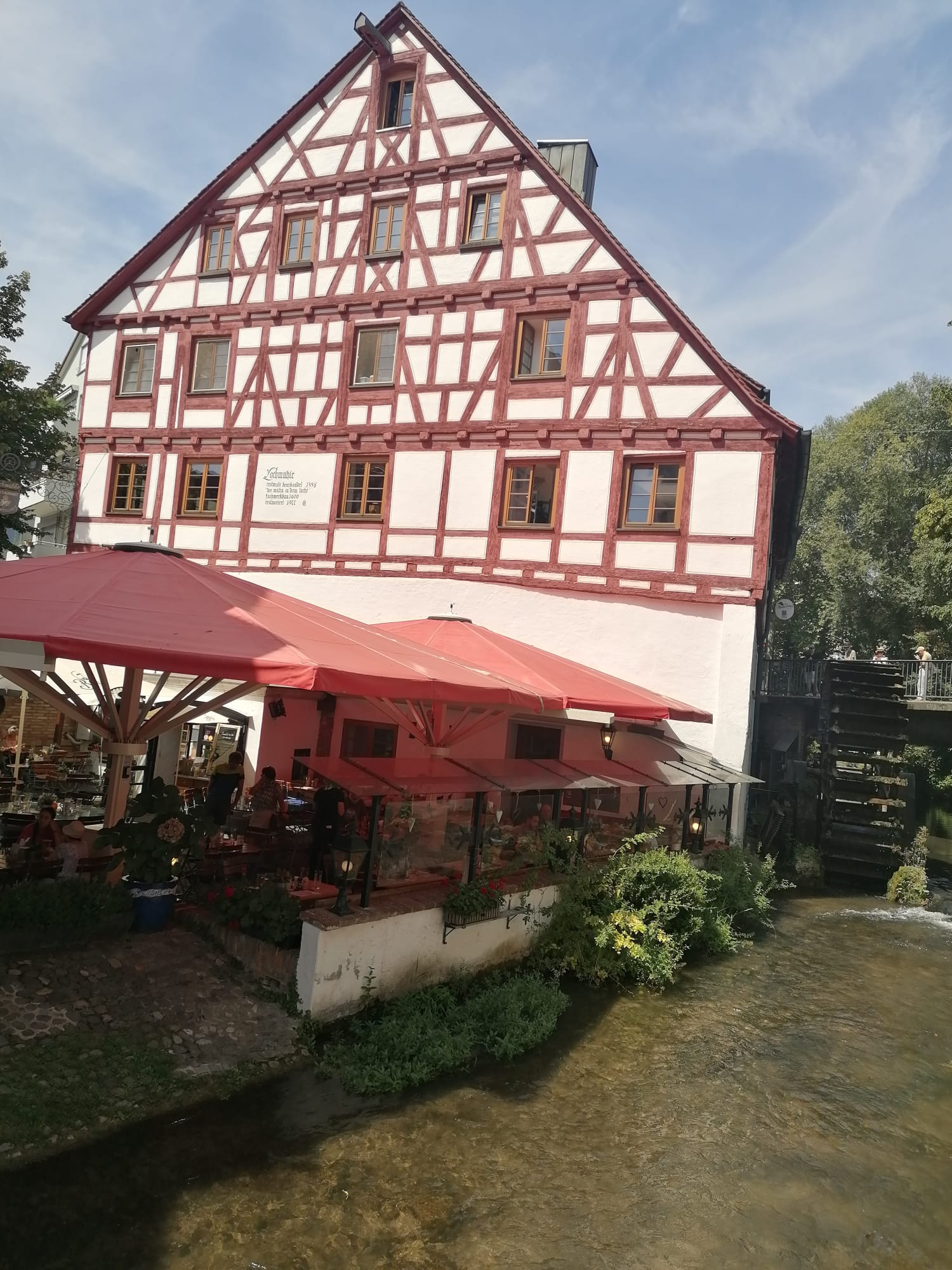 Nach dem Münster spazierten wir durch die Altstadt, bewunderten die Fachwerkhäuser, kamen an markanten Häusern vorbei, wie dem Einstein-Haus, dem „Schiefen Haus“, dessen Böden in den Zimmern teilweise 40 cm Höhenunterschied von Wand zu Wand aufweisen, dem Kässbohrer-Haus, aus dem die Hersteller der Setra-Busse stammen. Und zu allen Häusern gab es für uns Geschichten und aus allen Geschichten konnte man heraushören, wie sehr die Führerin ihre Stadt liebt. Am Schluss lud sie uns sogar ein, im nächsten Juli unbedingt zum Schwörmontag, dem Stadtfest und Highlight des Jahres, nach Ulm zu kommen.