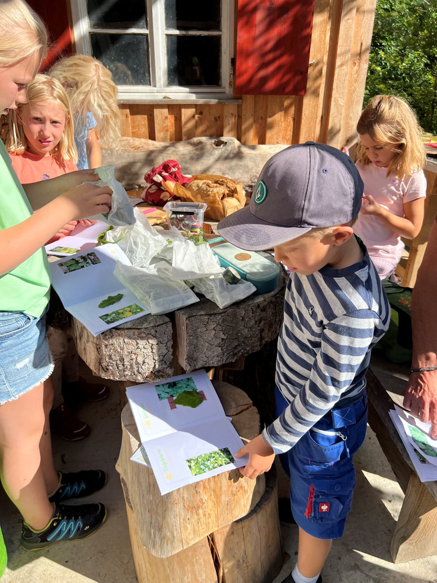 Zwischenstopp an Lucias Paradiesgärtle gingen die Kinder auf Kräutersuche und füllten ihre Büchlein "meine wilden Kräuter" mit Löwenzahn,